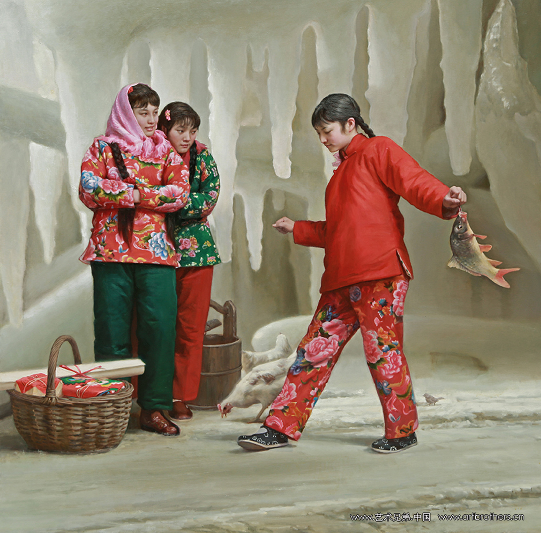 《家园.24节气--大寒戏冰》尺寸:145x145cm 2014年作 |