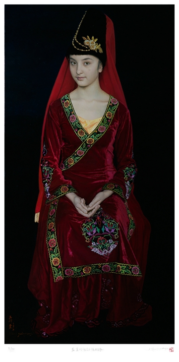 2012版A王沂东限量版画《盛装的维吾尔族姑娘》纸本版画 画心尺寸: 126X63cm 共99版 |