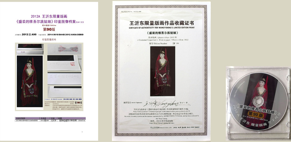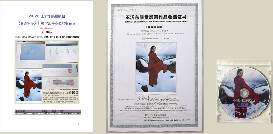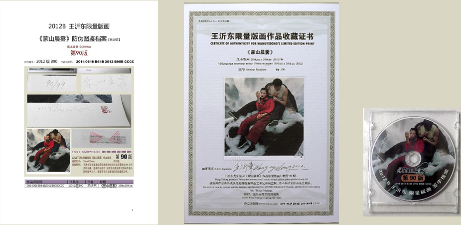 | 2012年王沂东限量版画 | 保真附件: | 王沂东签字盖章现场多机位全高清视频及作品背景图文PDF文件资料光盘。版画作品原件加载中央数据库识别码并植入防伪电子芯片。亲笔签字并加盖钢印的收藏保证书,及防伪图鉴档案印样。 |